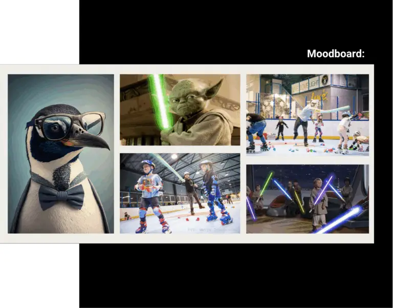 Miecz świetlny symbolizuje zabawę, wyobraźnię i kreatywność. To odniesienie do „Gwiezdnych Wojen” podkreśla, że nauka jazdy na rolkach może być ekscytującą przygodą pełną wyzwań i radości, a instruktor jest niczym mistrz Jedi prowadzący swoich uczniów do mistrzostwa.